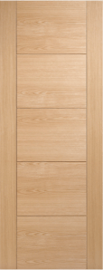 The Vancouver 5P by Leeds Plywood & Doors features five centre panels in a stylish ladder design, finished in oak grain — a perfect modern touch for contemporary homes.